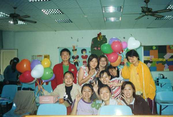 氣球,都是班上同學幫忙吹的,超級感動!晚上也有慶生,在嘉大操場,令人印象